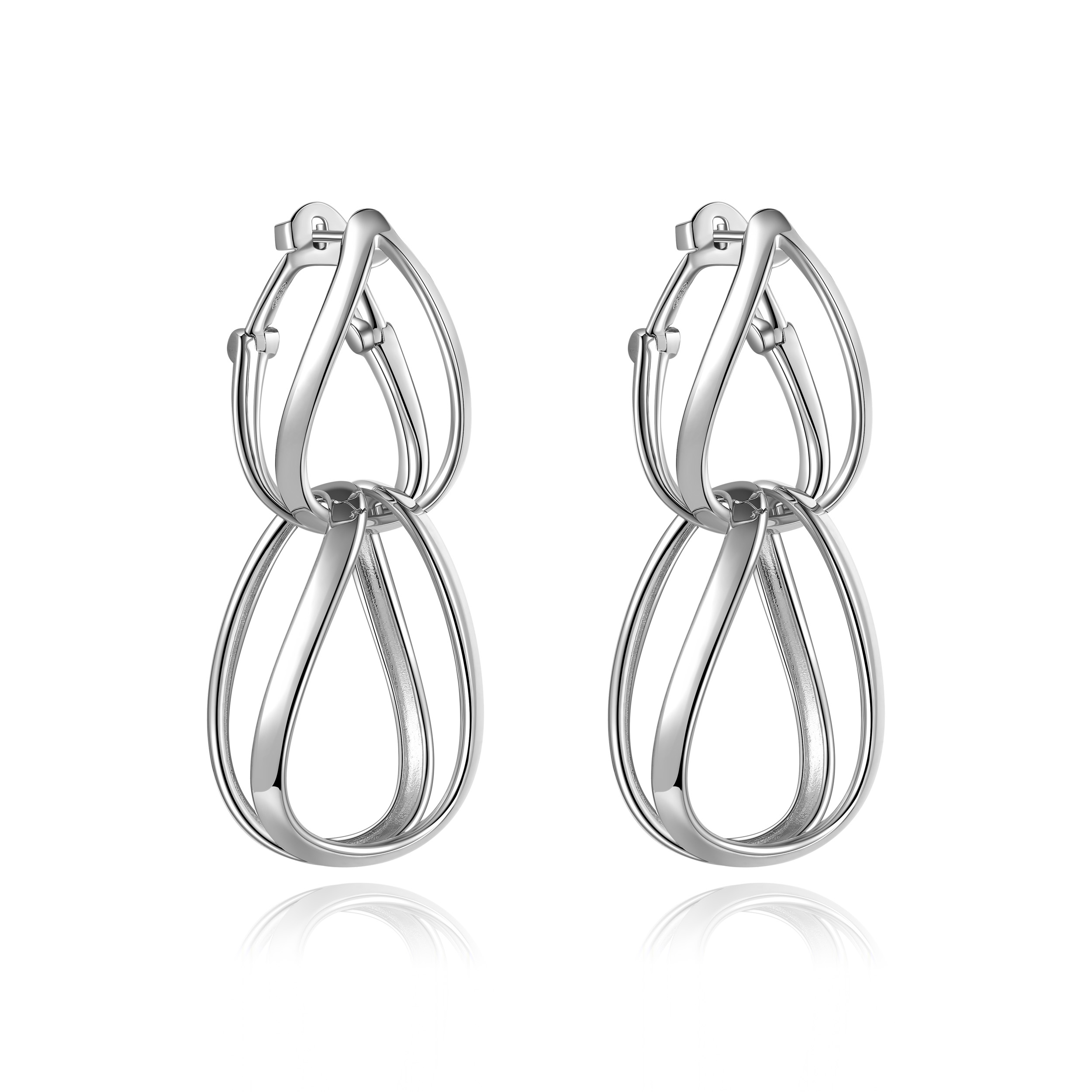 Deze elegante oorbellen van 925% sterling zilver vallen op door hun dubbele druppelvormen die subtiel in elkaar overvloeien. Het moderne, luchtige design creëert een gevoel van beweging en verfijning, perfect voor de vrouw die houdt van statement pieces met een delicate touch. De gepolijste zilveren afwerking vangt het licht bij elke beweging en laat je stralen, zowel overdag als ’s avonds. Tijdloos, stijlvol en onmiskenbaar chic.